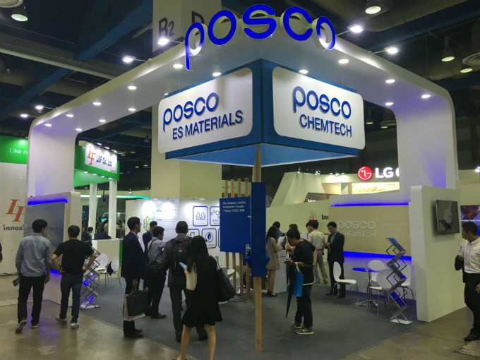 포스코켐텍은 2차전지 배터리 음극재를 만드는 기업으로 현재 LG화학, 삼성SDI 등에 주로 공급하고 있다. 이번 전시회에서 소개하는 음극재는 천연흑연계 음극재, 인조흑연계 음극재, 탄소계 음극재로 구분돼 있는데, 제공 공정에서는 표면코팅 및 열처리 기술이 이 기업의 특징이라 할 수 있다. 그리고 음극재에 사용되는 원료는 포스코의 코크스 과정에서 발생하는 COG(Coke Oven Gas)를 활용했다는 점이 국내에서 유일하게 가질 수 있는 장점이다.