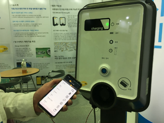 ▲ 차지인이 개발한 충전공유 앱 '망고' 시연 모습