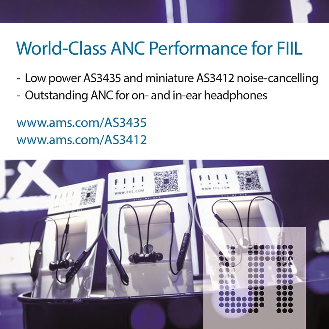 ams의 하이브리드 액티브 노이즈 캔슬레이션(ANC) 오디오 IC인 AS3435는고성능 캔비스 프로(Canviis Pro) 무선 온이어(on-ear) 헤드폰에, ams의 AS3412는 (FIIL사의) 첫 넥 밴드(neck band) 기반 블루투스 인이어(in-ear) ANC 헤드폰 제품 중 하나인 드리프터 프로(Driifter Pro)에 각각 탑재됐다.