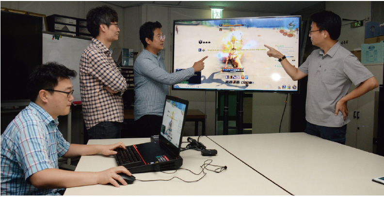 ETRI는 ‘지능형 라이브 서비스를 위한 게임 운영 시나리오 운영 시나리오 : 게임 콘텐츠 사용자의 만족도 향상을 위해, 게임요소 간 연관속성을 분석하여 매트릭스 형태로 작성되는 운영 규칙의 모음 (예, 게임 개체들의 속성 밸런싱, 구성요소 배치 등) 최적화 플랫폼 기술 개발’과제를 수행중이다. 게임 로그데이터의 활용으로 기계학습에 기반한 게이머 행동특성 분석과 게임 서비스 운영 시나리오 최적화 생성 및 검증 관련 핵심원천기술을 확보, 사업화를 추진 중이다.