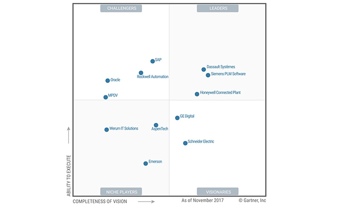 지멘스 PLM 소프트웨어는 가트너의 2017 매직 쿼드런트 보고서에서 MES 부문 리더로 선정됐다고 밝혔다.