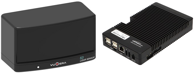 ▲카네비컴의 라이다 센서와 V2X 단말기