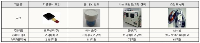 ▲ 나노융합2020사업을 통한 대표적인 매출 사례