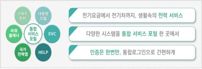 통합 서비스 포털이란, 다양한 전력 서비스 시스템들의 접속 경로를 일원화하고 통합 로그인을 구현하여, 고객들이 쉽고 편리하게 한전이 제공하는 서비스들을 이용할 수 있도록 구축한 포털이다.