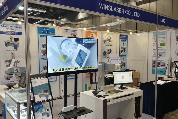 윈스레이저는 산업용 마킹키 전문기업으로 이번 전시회에는 자체적으로 개발한 3D 마킹 시스템, CO2 레이저 마킹/커팅 시스템, UV 레이저 시스템, 그린 레이저 시스템 등을 선보였다.