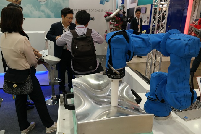 유니버설로봇이 스마트공장·자동화산업전(Smart Factory + Automation World 2018)'에서 폴리싱과 조립 공정 쇼케이스를 통해 유니버설로봇 플러스가 UR로봇 본체와 결합해 보다 복잡한 작업에 활용되는 모습을 선보이며 관람객과 소통하는 자리를 마련했다.