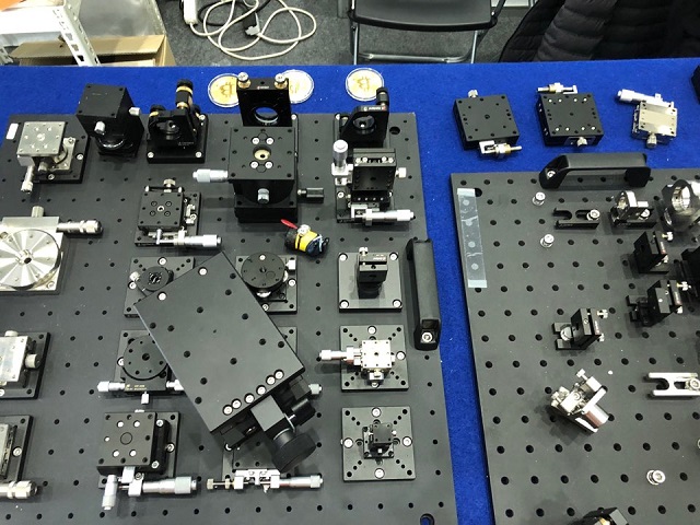 이번 전시회에서 SH가 선보인 제품은 매뉴얼 스테이지, 모터 스테이지, 각종 옵틱과 홀더등, 각종 램트와 레이저등의 광원, 레이저 보호장치 등이다.