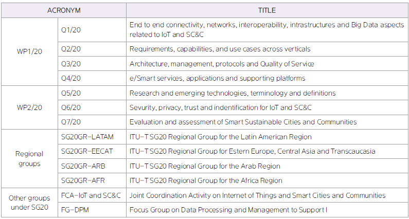 2016년 7월 ITU-SG20(Internet of things(IoT) and smart cities and communities(SC&C), IoT 및 스마트시티)에서 DOA와 Handle System 기술 기반의 IoT 사물의 위·변조 방지 식별자와 식별자 해석시스템 관련 신규 연구과제를 제안하였다. 제안 후, 미국, 영국, 캐나다 진영과 러시아, 중동 진영 사이에 많은 논쟁이 있었지만, 해당 권고에 DOA 외 동일한 기능을 가진 경쟁 기술을 포함하도록 권고 범위를 변경하여 신규 연구과제로 채택되었으며 현재 사물인터넷과 스마트 시티 환경에서 보안 및 프라이버시 요구사항, 신뢰기술, 보안 측정, 식별기술 등에 대한 표준화를 추진하고 있는 Q6(Security, privacy, trust and identification for IoT and SC&C)에서 “An Interoperability framework for IoT (Y.IoT-Interop)”로 표준화 작업이 진행되고 있다. 표 3은 ITU-T SG20의 조직구성을 나타낸다.