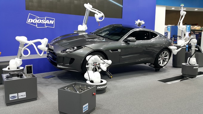 SIMTOS 2018에 참가한 두산로보틱스는 6축 다관절 로봇을 출품 및 시연함으로써 관람객들의 이목을 집중시켰다.
