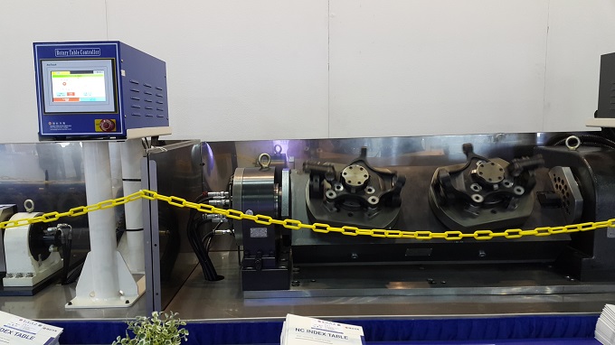 대신기계의 인덱스 테이블 위치결정용 고정장치는 회전기어와 고정기어에 페이스 기어(Face Gear)를 적용해 두 기어를 유압력으로 클램프(분할각/0.5°)하여 유격이나 진동을 상쇄시킨 구조로서 정밀가공 및 고절삭에 적합하다. 또한 정밀 분할이 가능하도록 유압 디스크 클램프 방식이 추가되었다(분할각/0.01°).