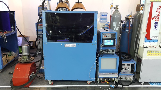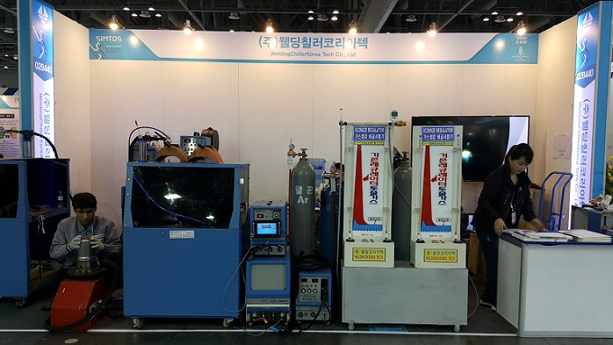 SIMTOS 2018에 참가한 웰딩칠러코리아텍은 용접기를 직접 전시해 참관객들의 관심을 모았다. 웰딩칠러코리아텍의 용접기(TIG 200 WAVE)는 기존의 펄스 기능보다 입열량을 낮추면서 용접이 가능한 전문가용 용접기이다. RT 용접에 적합한 이 용접기는 전류 ON/OFF를 반복해 용접한다. 디지털 전류계를 통해 용접전류를 확인할 수 있고, 트윈 타이머를 통해 전류 ON/OFF의 빈도를 조절할 수 있다.