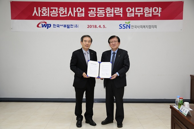 한국서부발전(사장 김병숙, 이하 서부발전)은 지난 5일(목) 서울 마포구 사회복지회관 회의실에서 한국사회복지협의회(회장 서상목, 이하 사회복지협의회)와 ‘사회공헌사업 공동협력을 위한 업무협약’을 체결했다.