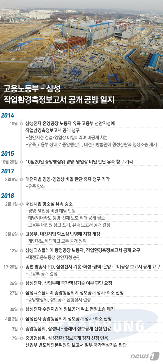 산업통상자원부가 반도체 생산공장에서 작성된 작업환경측정 보고서에 '국가핵심기술'이 포함돼 있다는 판단을 내리면서 "반도체 공정이 영업비밀에 해당된다"는 삼성전자의 주장에 한층 힘이 실릴 전망이다.
