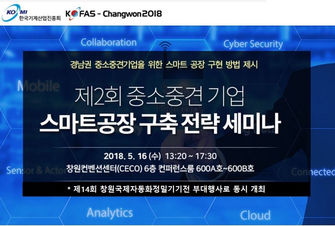 경남권 중소중견기업을 위한 스마트공장 구현 방법 제시라는 주제로 진행되는 이번 세미나는 5월 15일부터 18일까지 창원컨벤션센터(CEO)에서 개최되는 '제14회 창원국제자동화정밀기기전'의 부대행사로 마련됐다.