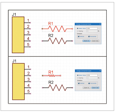 또 Symbol의 크기를 키우거나 줄일 수 있는데[그림 3 참조], 불러온 Symbol의 형상이 원하는 크기보다 크거나 작은 경우에 이 기능을 이용하면 Library를 수정하지 않고도 회로도상에서 바로 Symbol 형상의 크기를 수정할 수 있다. 단, 회로도에서 수정된 Symbol의 크기가 Original Symbol의 크기를 바꾸진 않는다.