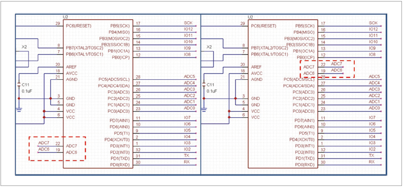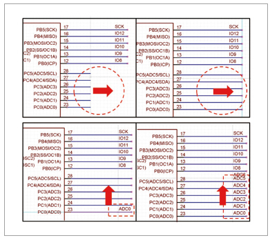 Symbol의 크기뿐만 아니라 Pin의 위치도 회로 구성에 원하는 위치로 옮길 수 있다. 엉켜 있는 Pin 배열 상태로 인해 구성이 복잡해진 부분을 정리하거나, 사용하지 않는 Pin을 정리할 때 매우 유용한 기능이다. 앞에서 언급된 Symbol의 크기를 줄이고 키우는 것과 마찬가지로 회로도상에서 Pin 위치를 옮기더라도 Original Symbol에는 영향을 미치지 않는다.