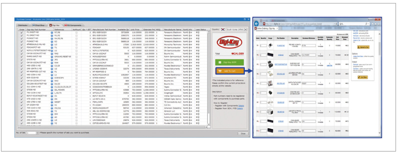 디지키(Digi-key)와 같은 부품 구매 사이트와 연동되어 있다는 것이 쿼드셉트의 가장 큰 장점 중 하나가 아닐까 싶다. 회로 작성이 끝나고 회로에 사용된 부품을 부품 구매 사이트에서 원-클릭으로 구매할 수 있도록 기능이 구현돼 있는데, 부품 구매 사이트로 이동하기 전 쿼드셉트 안에서 부품의 실시간 단가와 전체 가격에 대한 견적을 확인할 수 있다. 또 부품 주문에 필요한 BOM도 직접 작성할 필요가 없다. 쿼드셉트에서 제공하는 BOM 단추를 이용하면 부품 주문 BOM도 MS 엑셀 형식으로 한 번에 출력할 수 있다.