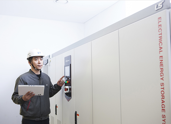 ▲ LS산전 관계자가 ESS를 점검하고 있는 모습