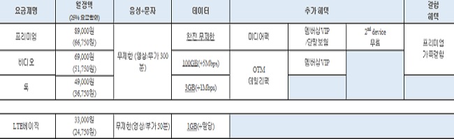 ‘데이터ON 프리미엄’은 월정액 8만9,000원에 데이터 제공량 및 속도제어가 전혀 없는 ‘완전 무제한’ 혜택을 제공한다. 속도제어가 없는 만큼 UHD급 영상을 즐기는 이용자들이 선호할 것으로 예상된다.