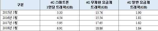 국내 최초로 데이터 선택 요금제를 출시한 지 3년여 만에 새롭게 데이터ON 요금제를 내놓은 것은 국내 스마트폰 이용행태가 변화했기 때문이다. 국내 LTE 스마트폰 1인당 트래픽은 2015년 3월 약 3.3GB에서 2018년 3월 약 6.9GB로 2배 이상 증가했다. 또한 무제한 요금제 이용자의 1인당 평균 트래픽은 약 18.9GB였으며, 일반 요금제 1인당 트래픽은 1.8GB로 10배 이상 차이가 났다.