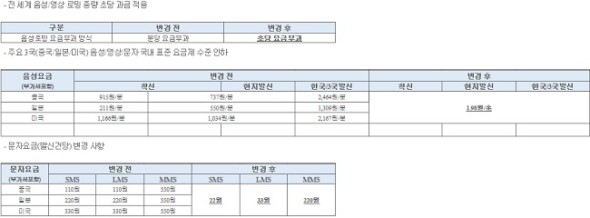 해외에서도 국내 음성통화료 초당 1.98원 적용, 최대 95% 요금 인하 효과