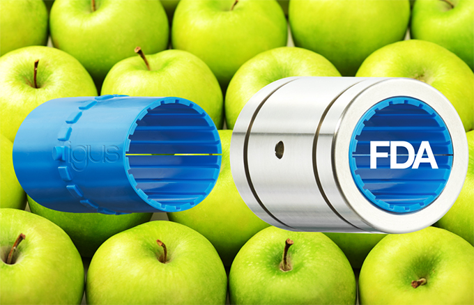 iglidur A160은 스테인리스 스틸 샤프트에 적용 시 온라인 사용 수명 확인이 가능하고 긴 사용 수명과 높은 내화학성을 가진다. 또한, 라이너는 쉽게 세척과 교체가 가능하고 오염에 강하다. 새로운 직동 베어링 구성품은 drylin R 원형 가이드와 모든 drylin W 하우징 베어링에 현재 8가지 치수로 이용할 수 있다.