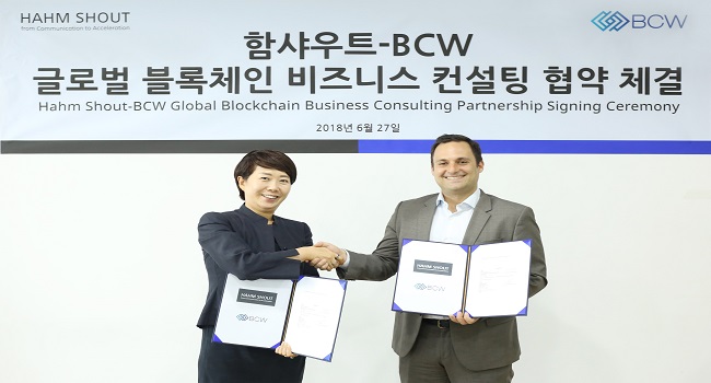 함샤우트가 글로벌ICO전문 컨설팅 기업BCW와 국내외 블록체인 기업들을 대상으로‘글로벌 블록체인 비즈니스 컨설팅’ 서비스를 제공하는 파트너십을 체결했다.