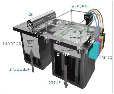 마. CJP(Color Jet 3D Printing, 분말 접합 및 컬러 잉크 투사 조형)