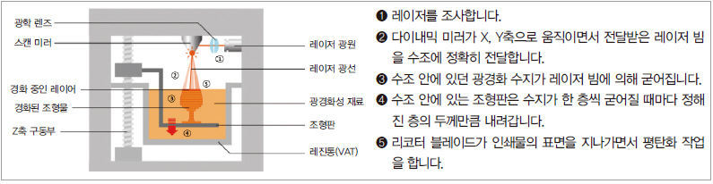 사. SLA(Stereo Lithography Apparatus, 광경화성 수지 적층 조형)