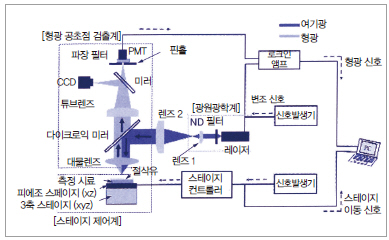 ▲ 그림 2. 레이저 여기 형광 공초점 검출법의 측정 원리