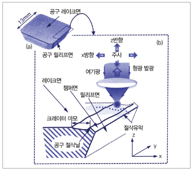 ▲ 그림 3. 레이저 여기 형광 공초점 검출법에 의한 공구 날끝 미세 형상 측정