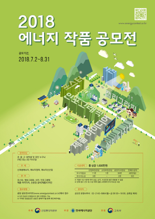강진희 에너지공단 홍보실장은 “에너지 작품 공모전은 국민들께 신재생에너지 및 에너지신산업, 에너지절약을 보다 친숙하게 알리고자 마련한 국민 참여 마당”이라며 “에너지 분야에 관심 있는 국민 여러분의 많은 참여를 부탁드린다”고 전했다.