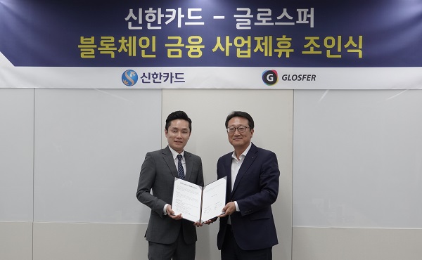 블록체인 전문기업 글로스퍼가 신한카드와 블록체인 기반 금융서비스 사업협력을 위한 양해각서(MOU)를 체결했다.