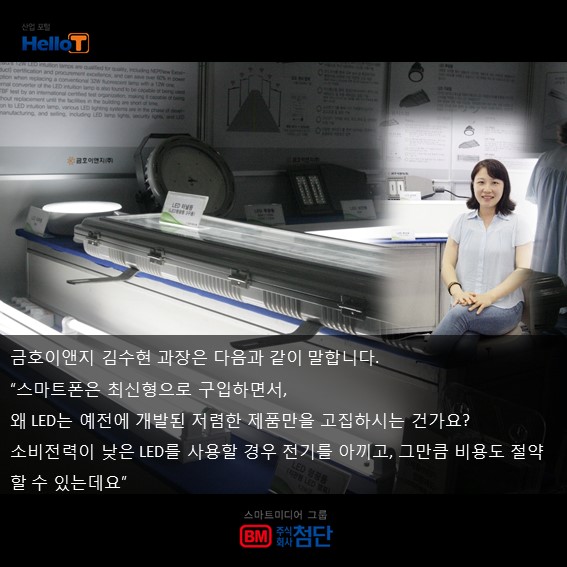 “스마트폰은 최신형으로 구입하면서, 왜 LED는 예전에 개발된 저렴한 제품만을 고집하시는 건가요? 소비전력이 낮은 LED를 사용할 경우 전기를 아끼고, 그만큼 비용도 절약할 수 있는데요”