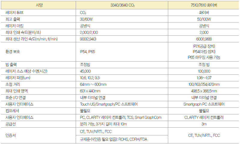 • 코드 인식: 우수한 CLARiTY 레이저 컨트롤러로 인쇄 및 마킹 공정에서 작업자 개입이 감소하여 인쇄 오류를 방지할 수 있다. 내장된 코드 인식으로 코드를 언제나 정확한 제품에 정확하게 인쇄할 수 있다.