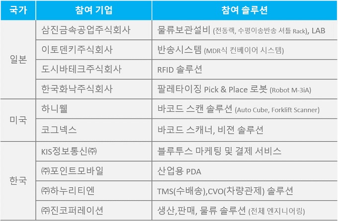 올해도 글로벌 IoT관련 기술 대표 기업인 일본의 산신금속공업, 이토텐키, 도시바테크, 화낙, 미국의 하니웰, 코그넥스, 한국의 KIS정보통신, 포인트모바일, 하누리티엔 등이 4차 산업혁명의 핵심 기술들을 구축하여 진코퍼레이션과 함께 스마트팩토리 쇼룸 1주년 리뉴얼 오픈식에 참여한다.