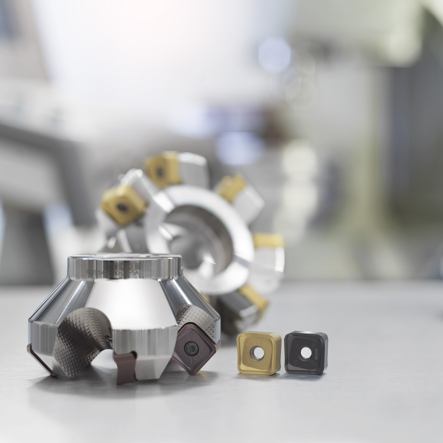 더블콰트로밀22는 각각 최대 9㎜(0.350인치) 및 11㎜(0.430인치) 절삭 깊이의 45° 및 68° 리드각 버전으로 제공된다. 표준 탄젠셜형 페이스 밀과 달리 더블콰트로밀22의 양면 인서트는 쾌삭 성능이 탁월하여 절삭력/동력 소비를 줄이고 공구 수명을 연장한다.