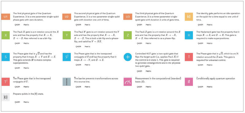 [그림 3]는 실제로 필자가 IBM Q Experience에서 Composer를 통하여 게이트를 설계한 화면이다. 각각의 아이콘은 Help 기능에서 상세히 설명하고 있으며 [그림 4]를 참조하기 바란다.