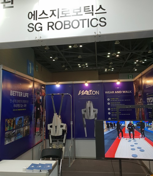 에스지로보틱스가 10월 10일부터 13일까지 킨텍스에서 개최하는 ‘2018 로보월드’에 참가해 하반신 마비 장애의 보행을 돕는 웨어러블 로봇 ‘워크온 슈트’를 공개했다.