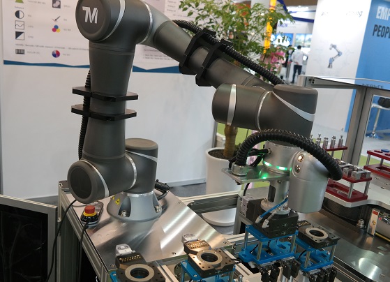 이레테크가 10월 10일부터 13일까지 킨텍스에서 개최하는 ‘2018 로보월드’에 참가해 비전 내장형 협동로봇 ‘TM 시리즈'를 선보였다.
