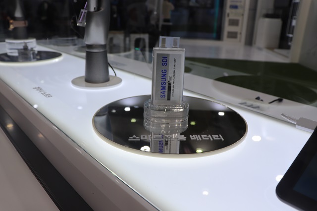 ▲ 삼성SDI는 관람객과 친숙한 스마트폰, 무선 이어폰 등에 들어가는 배터리 등도 선보였다. <사진 : 김동원 기자>