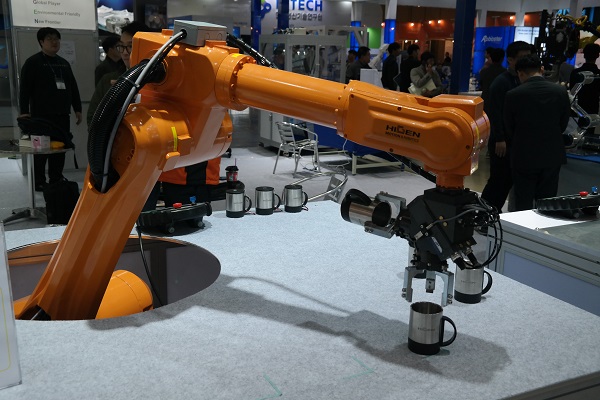 이번 전시회에서 하이젠모터가 선보인 제품은 로봇모듈 ‘ARES 시리즈’를 비롯해 6축 다관절 로봇, 델타로봇 등이다. 특히 6축 다관절 로봇(모델명: HMR-RVR6-0061500T)는 120kg의 중량에 반복 정밀도는 ±0.05mm, 탑재 하중은 6kg의 사양을 가진다. 또한 로봇 관절용 네트워크 드라이브 모듈인 ARES 시리즈는 전류 1.6~11.2A, 전압 24~48V이며 홀 센서와 디지털 엔코더를 장착하고 있다.