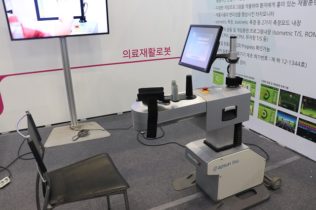 ▲ 앞선이앤시는 ‘2018 로보월드’에서 뇌졸중 환자를 위한 뇌가소성 촉진 시스템 ‘뉴로-X’를 선보였다. <사진 : 김동원 기자>