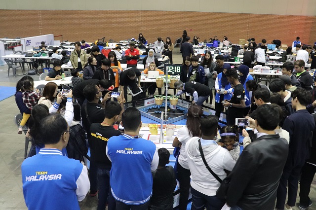 행사장 한편에서는 로봇을 만드는 학생들의 손이 분주했다. 직접 손으로 로봇을 설계하는 학생들이 있었고, 의견을 나누는 학생들의 모습도 보였다. 필리핀 등 외국 학생들도 서로 의견을 나누며 로봇을 만들고 있었다.