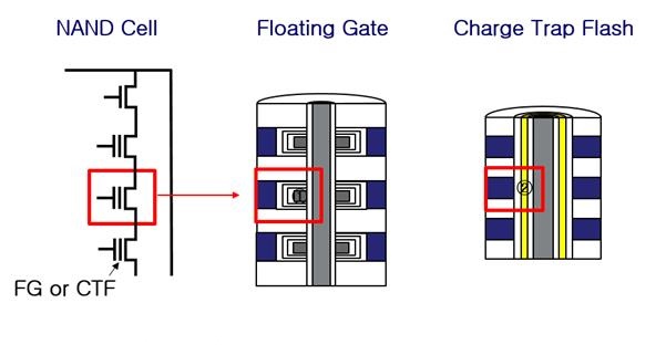 ▲3D 플로팅 게이트 vs. 3D CTF 비교
