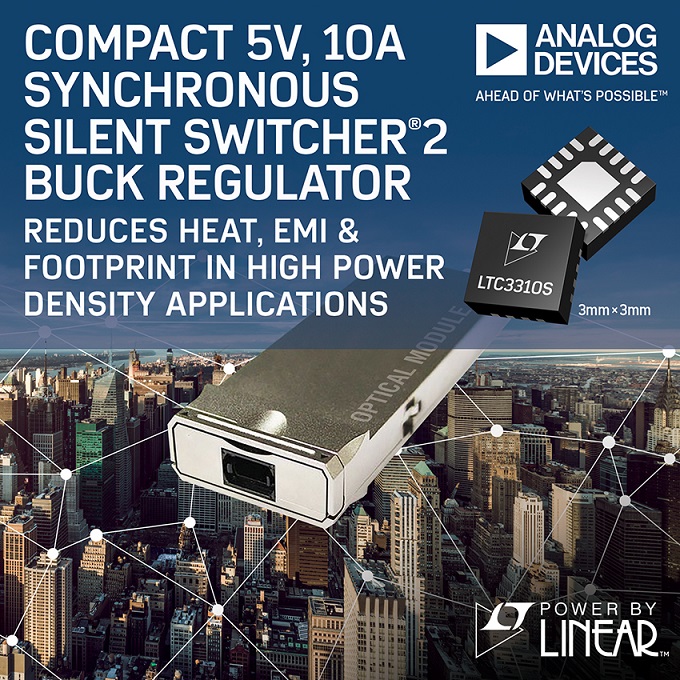 아나로그디바이스(ADI)는 5V, 10A, 낮은 EMI가 특징인 모놀리식 동기식 벅 컨버터 신제품 파워바이리니어(Power by Linear) LTC3310S를 출시한다고 밝혔다. 신제품은 고정 주파수 피크 전류 모드 아키텍처를 기반으로 하고 있어 빠른 과도 응답 특성을 요구하는 높은 스텝다운 비율의 애플리케이션에 이상적이다.