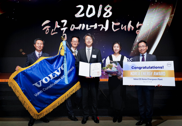 세계적인 굴삭기 전문 업체인 볼보건설기계코리아 창원공장이 11월 27일 여의도 63컨벤션센터에서 진행된 '2018 한국 에너지 대상' 시상식에서 국무총리 표창을 수상했다.