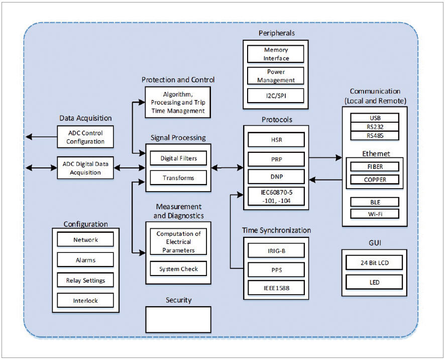 ▲ 그림 3. AM6x 프로세서 기반 보호 계전기의 시스템 블록 다이어그램