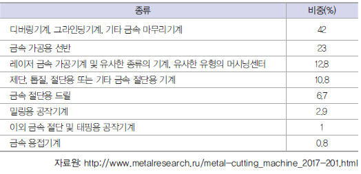 현재 러시아 공작기계 시장 중 자국 내 제조업체의 점유율은 10% 이하로 90% 이상을 수입에 의존하고 있다.