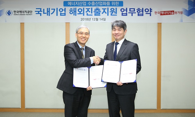 한국에너지공단(김창섭 이사장)은 12월 14일, 한국에너지기술평가원(임춘택 원장, 이하 에기평)과 한국에너지공단 본사에서 에너지 분야 국내기업 해외진출지원을 위한 업무협약을 체결했다.